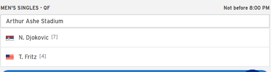 虎扑09月03日讯今日美网进行女单上半区和男单下半区1/4决赛较量。由于万卓索娃退赛,夜场第一场进行的比赛取消,德约科维奇对阵弗里茨比赛将在北京时间今天早上8点开打。